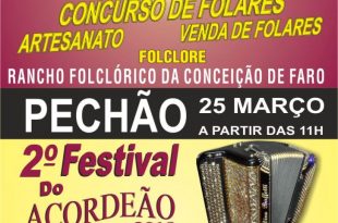 O Polidesportivo de Pechão acolhe, no próximo Domingo, 25 de Março de 2018, o 20.º Festival do Folar e o 2.º Festival do Acordeão. Os apreciadores do tradicional doce da Páscoa – o folar -, terão à disposição, no Polidesportivo local, prova, venda e concurso de folares da região, a …