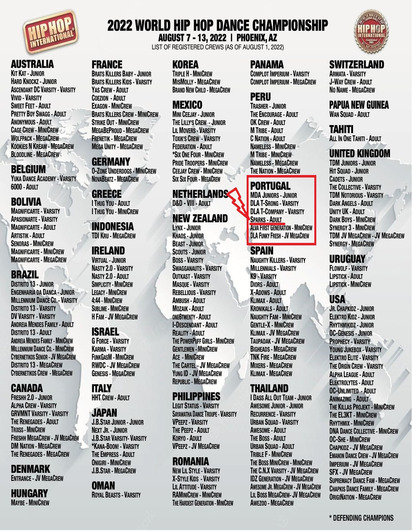 Entre 6 e 13 de Agosto os SPARKS da ADA – Academia de Dança do Algarve vão estar entre os melhores do mundo no 2022 WORLD HIP HOP DANCE CHAMPIONSHIP (Hip Hop International), em Phoenix, Arizona, nos Estados Unidos da América.